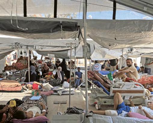 partiellement opérationnels, selon l’OCHA, le bureau de coordination des affaires humanitaires de l’ONU. Les grands centres de santé comme Nasser et Al-Amal à Khan Younes ont été complètement débordés. Parallèlement, les entraves à l’acheminement de l’aide ont contraint les équipes médicales à rationner les médicaments tels que les analgésiques, à fournir des traitements moins efficaces ou à refuser des patients. Elles ont manqué de matériel chirurgical comme les anesthésiques, les antibiotiques pédiatriques et les médicaments pour les maladies chroniques comme l’épilepsie, l’hypertension et le diabète.
