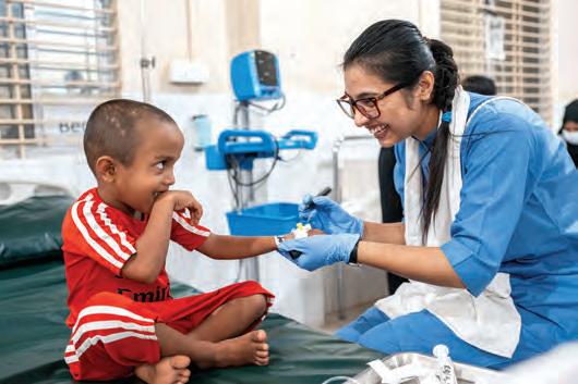 MSF Nurse Zannatul Arafat prepares four-year-old Shofi for an operation to remove abscesses at the hospital in Kutupalong Refugee Camp in Bangladesh. With more than one million inhabitants, Kutupalong, located close to the border with Myanmar, is the world’s largest refugee camp, and is populated by Rohingya refugees who have fled violence and persecution in Myanmar. MSF is the leading provider of healthcare in the camp and offers emergency care for trauma patients, mental healthcare, sexual and reproductive healthcare, treatment for chronic diseases, and water and sanitation support.