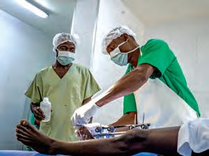 MSF doctors perform surgery on a man with a gunshot wound in the Salama Clinic in Bunia, Ituri Province, where escalating violence is having a devastating impact on the population. Since mid-2023, MSF teams have performed more than 4,200 surgical procedures in the project.