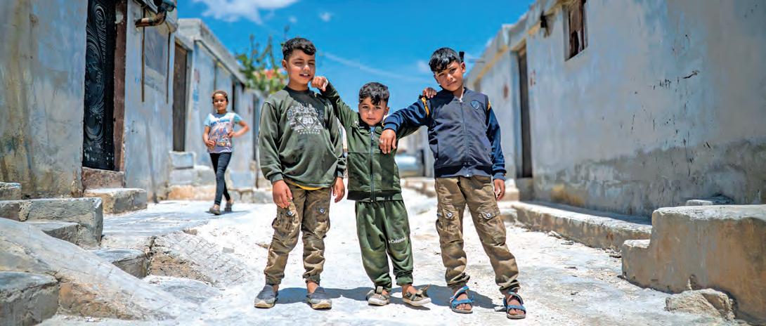 Three members of the Walid family play amid the ruins of a camp in Idlib province. Walid and his family left their small village in southern Aleppo in 2011 after the regime began bombing the area. Over the following 14 years, they moved at least seven times as deadly airstrikes followed them from village to village. When Walid and his family went back to their village after the fall of the Assad regime, they found empty ruins filled with the remains of mines left behind by the regime. In 2024, MSF conducted more than 1,134,400 outpatient consultations in Syria.