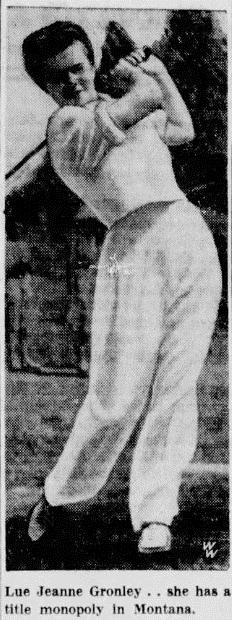 As for Lue Jeanne Gronley, sadly she died in 1975 at age 51 following a brief illness. Her career in Montana golf was short and brilliant, and she was even honored by the Butte Country Club in the years following her death with the Lue Jeanne Gronley Award, given to the Ladies' Club Champions.