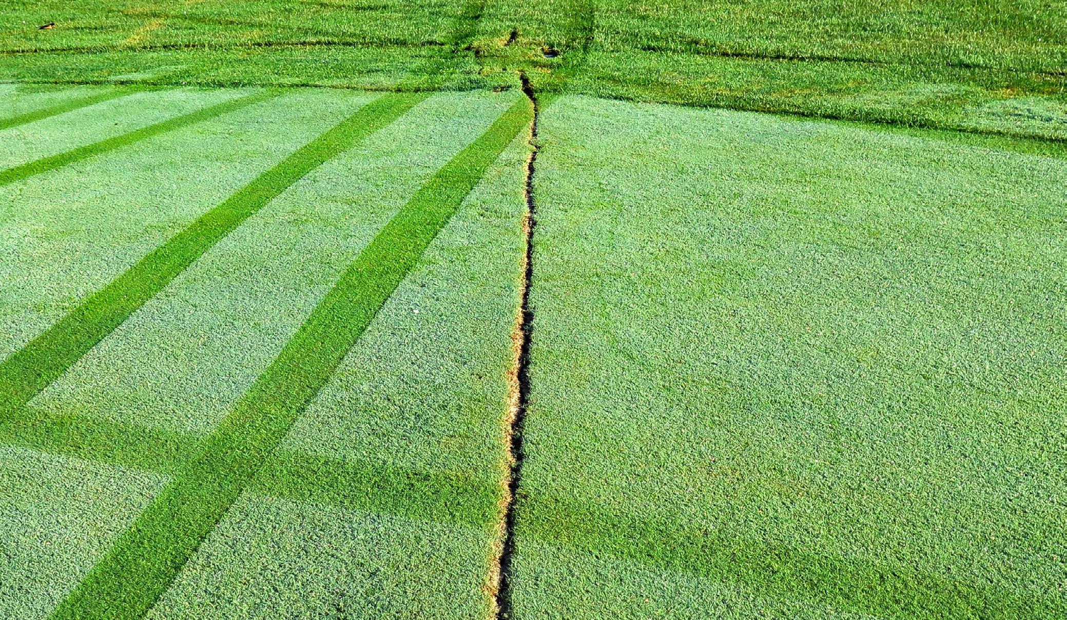is simply not the case. When projects like installing drainage or a new irrigation system are completed, scars will be visible where work was done. These areas will recover, but it takes time for sod to establish or for turf to fill the voids that were created in disturbed areas.