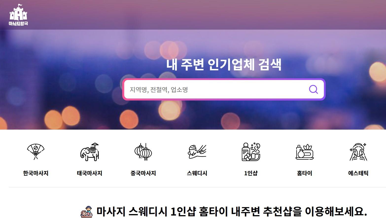 마사지,스웨디시,1 인샵,다인샵,홈타이,홈케어,타이마사지,아로마마사지,건식마사지, 로미로미,건마,스파,왁싱, 등 할인정보를 제공하는 마사지왕국