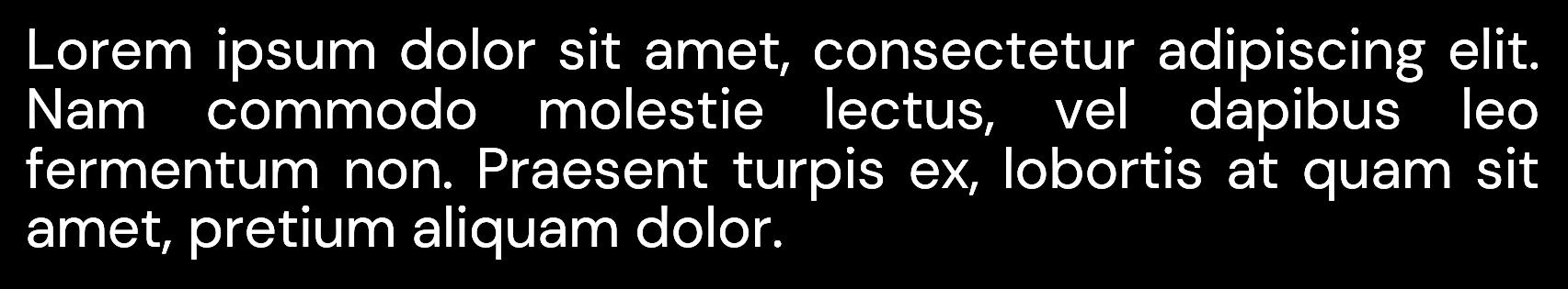 Lorem ipsum dolor sit amet, consectetur adipiscing elit Morbi eget auctor dolor. Nunc egestas nulla ut turpis gravida, sit amet posuere lectus malesuada Vestibulum tincidunt nunc quis turpis interdum luctus Curabitur dolor leo, vehicula ut varius quis, pellentesque nec ante. Morbi lobortis augue leo, quis hendrerit felis accumsan ut Integer velit purus, tincidunt vitae commodo id, sollicitudin vel leo. Donec sed scelerisque ante, eget accumsan ligula. Sed malesuada consectetur varius. Donec molestie semper nibh quis faucibus. Praesent condimentum lorem tristique elementum lacinia. Sed in neque dolor.