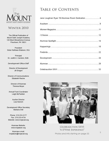 Winter 2010 The Official Publication of Mount Saint Joseph Academy 120 West Wissahickon Avenue Flourtown, PA 19031 President Sister Kathleen Brabson, SSJ