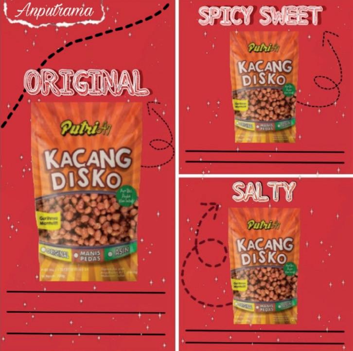 Kacang Disko Putri A7 adalah produk makanan ringan yang memiliki tekstrur yang sangat crunchy, berbahan dasar dari kacang tanah yang diolah dan dipadukan dengan bumbu taradisional berkualitas