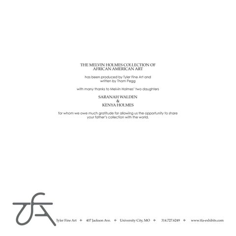 THE MELVIN HOLMES COLLECTION OF AFRICAN AMERICAN ART has been produced by Tyler Fine Art and written by Thom Pegg with many thanks to Melvin Holmes’ two daughters