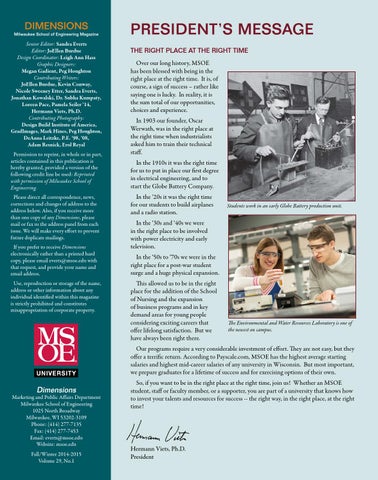 Marketing and Public Affairs Department Milwaukee School of Engineering 1025 North Broadway Milwaukee, WI 53202-3109 Phone: (414) 277-7135 Fax: (414) 277-7453 Email: everts@msoe.edu Website: msoe.edu Fall/Winter 2014-2015 Volume 29, No.1