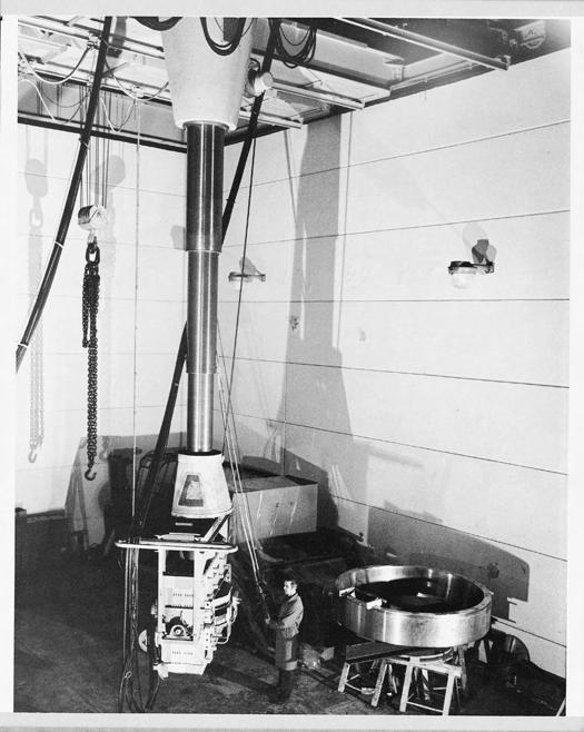 Construction began 60 years ago, in 1965, on the Fred F. Loock Engineering Center. It is located adjacent to the Allen-Bradley Hall of Science. When completed in 1969, the Engineering Center included state-of-the-art laboratories and a new 25 million-volt betatron that produced high-energy electrons in a vacuum tube so an X-ray beam could detect flaws or cracks of only 0.005 inches in steel. The betatron, pictured at right, is no longer part of the facility, but the 6-foot-thick concrete walls still exist! The new Robert D. Kern Engineering Innovation Center will be built on the north side of, and connected to, these buildings.