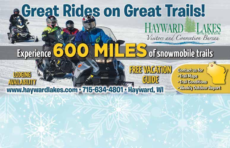 February 2023 5 *Restrictions apply. See bestwesternrewards.com for program terms and conditions. Each Best Western® branded hotel is independently owned and operated. For a list of most properties, local attractions and events, www.bestwesternwisconsin.com. Best Western and the Best Western marks are service marks or registered service marks of Best Western International, Inc. ©2021 Best Western International, Inc. All rights reserved. Join Best Western Rewards®, our FREE rewards program and earn points for every qualified night you stay. Redeem points* for free room nights, partner rewards, merchandise, dining retail and gift cards. With more than 35 Best Western® Hotels & Resorts in Wisconsin, the adventure of winter fun is a warm and welcome reward. When you’re ready to hit the road, we’re ready to welcome you! Visit bestwesternwisconsin.com | 1.800.237.8483 Over 35 Hotels Free Wi-Fi Parking Available Best Western Rewards Wisconsin’s Rewarding Winter Wonderland Is Waiting Just Up The Road. 2701 Wisconsin Snowmobile final.indd 1 11/10/21 3:49 PM
