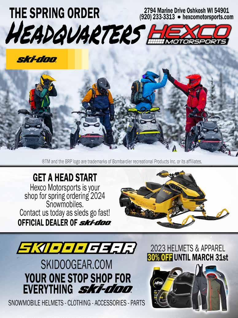 SKI-DOO SPRING SALES EVENT PERFORMANCE MOTORSPORTS Pre-order your 2024 Ski-Doo before March 31, 2023, and get 2 years of coverage or $750 credit on parts, accessories and apparel ROBSPERFORMANCE.COM | 920-699-3288 | JOHNSON CREEK, WI Guaranteed delivery to your dealer by Dec. 21, 2023. Offer ends March 31, 2023. © 2022 Bombardier Recreational Products Inc. (BRP). All rights reserved. ®, TM and the BRP logo are trademarks of BRP or its affi liates.