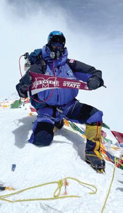Steve “Duke” Pigott (B.S. aerospace engineering, ’94), of Albuquerque, New Mexico, successfully summited Mt. Everest in May. It was the final challenge necessary for him to complete the Seven Summits—the highest peak on each of the seven continents. He is now one of only 400 recorded to have completed the feat. His Everest climb took 28 days, and, at the top, he stopped to take a photo holding an MSU pennant and play a guitar—which is now on display at the Hard Rock Cafe in Kathmandu, which lies at the base of the mountain.