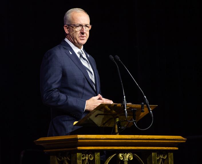 Anyone driving down Hardy Street will see the impact of long-term planning and alumni support. What was recently a gravel parking lot now contains two state-of-theart buildings, the Richard A. Rula Science and Engineering Complex and the Music Building, both of which opened in the last two years. The Music Building connects to the Kent Sills Band Hall, which was renamed in honor of the longtime Famous Maroon Band director in 2021.