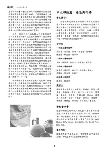 中文神學教育是個團隊事奉,是為華人教會 栽培人才,也是承先啟後的薪傳工作,我們更需 要您的代禱和提醒,我們深信聖靈在九十年代初 期對澳洲華人教會的感動是有祂永恆的目的,讓 我們一起來承擔這重任,使華人教會能在澳洲帶 出美好的見證,也能在普世的宣教事工上作出貢 獻。