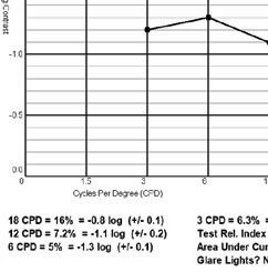• Conduct Contrast Sensitivity Function testing at 1.5, 3, 6, 12 and 18 cycles-per-degree at either photopic or mesopic luminance levels