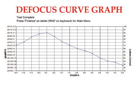 • Defocus Curve automates ETDRS testing from the standard +2.0 diopters through -5.0 and also customizable depending on specific study