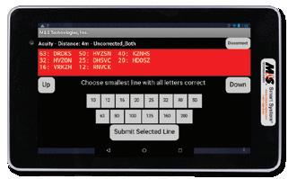 • Quickly and accurately guides technicians through computer-automated, algorithm-based visual acuity testing eliminating technician bias, calculation errors, and erroneous test results