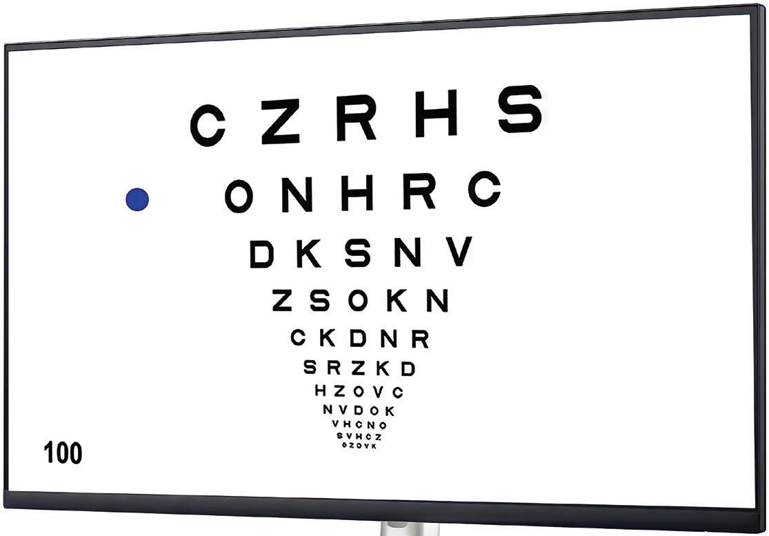 • Optotypes are precisely calibrated for both distance-to-subject and pixels-per-inch, strictly following ANSI Z80.21-2010 (R2015), ISO 8596:2017, and ISO 10938 guidelines regarding size, spacing between optotypes, and spacing between lines