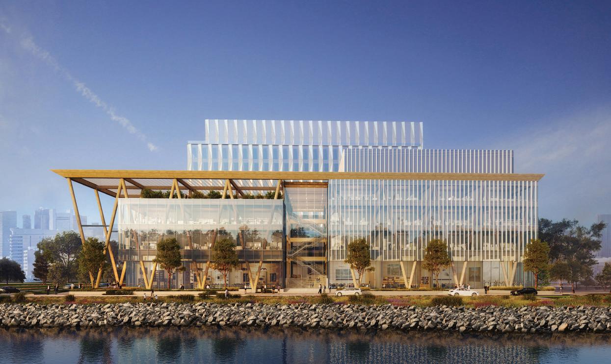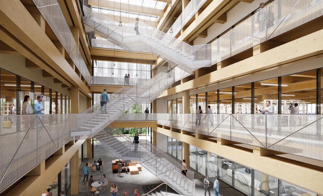 Two buildings next to each other at the waterfront to create a highly sustainable architecture in-class lab & life science using mass timber.