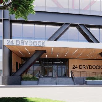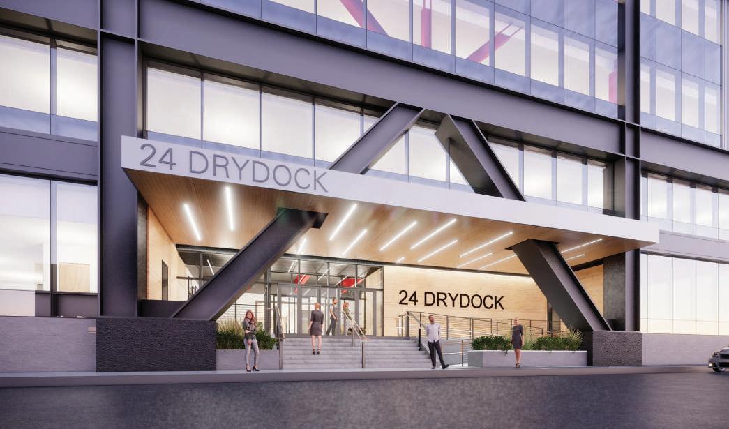 Positioned within Boston’s industrial district, 24 Drydock stands in close proximity to the existing drydock, seamlessly integrating with the bustling industrial community while contributing to the growth of a vibrant innovation ecosystem. This project encompasses an eight-story structure, serving as the future headquarters for Boston Ship Repair, housing a training facility, providing ����space for the local non-profit organization Save The Harbor / Save The Bay, and featuring a restaurant. Furthermore, it actively encourages the adoption of emerging economy endeavors. The Proposed Project outlines the allocation of space for two key tenants: Boston Ship Repair and life sciences/research and development facilities.