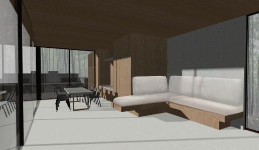 Because of its abundant water sources and wood, a “pellet-type hot water boiler” will be adopted. The ���is made of concrete and heat storage, creating a comfortable environment without waste even in large spaces.