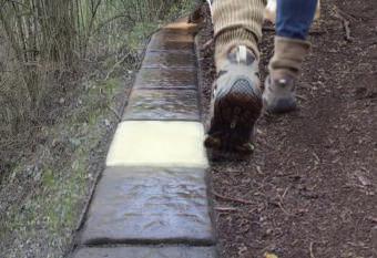 Same material and technique are applied to cap the tops of three towers, providing necessary reinforcing, protection from the weather, and transforming the entire tower into a climbing surface.
