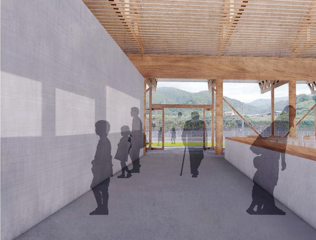 In a disaster situation, emergency vehicles can be accessed in the road at the edge of sqare. This is the case so the entire front of the building becomes a disaster prevention square, which transforms into a functional disaster prevention base. Through the long corridor, the disaster prevention center can smoothly communicate with eachother. Also, by inserting the emergency ����line to the square, it ensures smooth access to the Disaster Prevention Center and Disaster Prevention square.