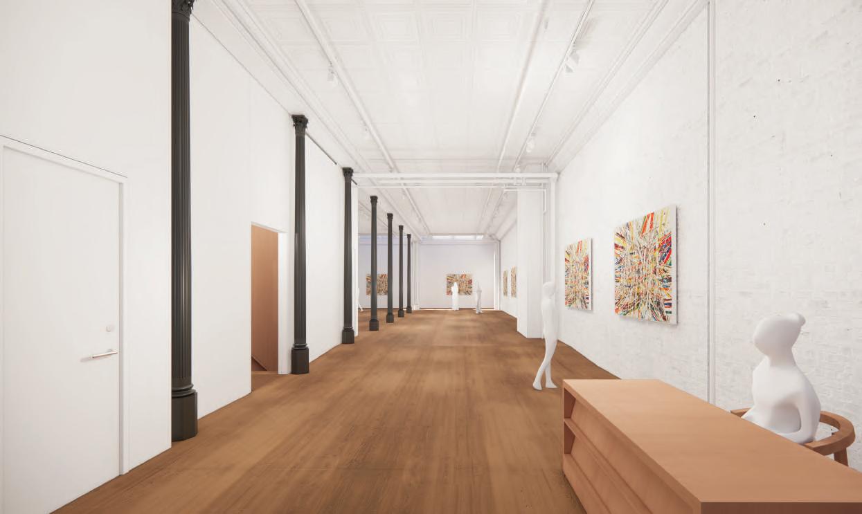 The interior renovation of a historic building in Tribeca, NY, originally constructed prior to 1938. This 17,000 square-foot project involved a meticulous redesign of the first floor into a contemporary gallery and the cellar floor into a versatile office and communal area.