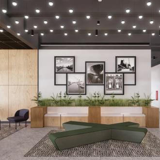 The green outdoor square and a semi-outdoor eaves open to the public and have a continuous strip shape toward the