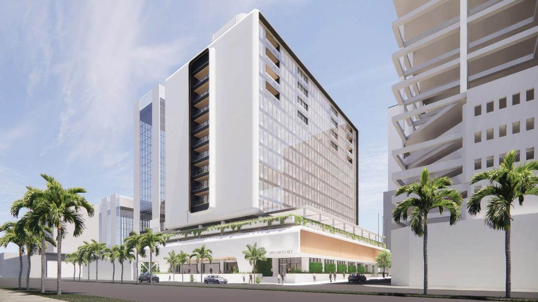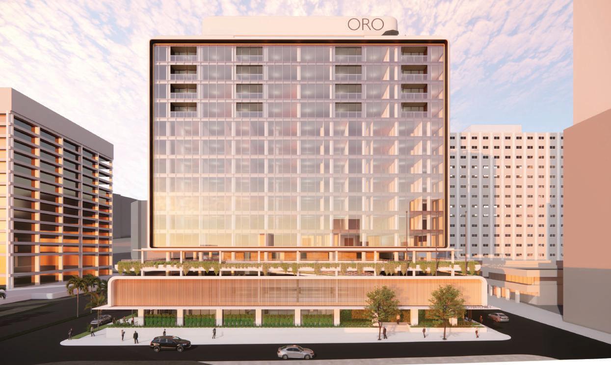 Existing office building conversion to hotel and condominiums that include a restaurant, conference center, spa, fitness center, rooftop pool, and sundeck.