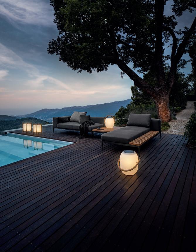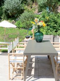 3 Zoals ze in de zuidelijke landen doen: aan een lange tafel met de hele familie buiten eten. Gelukkig hoeft niemand stoelen mee te nemen. Deze van aluminium zijn ultralicht én stapelbaar, zodat je ze makkelijk kunt opslaan. Stoel uit de collectie ‘Studie’ van Fermob, € 598 verkrijgbaar in 22 kleuren, Dacks, Amsterdam, dacks.nl