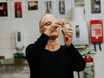 Ook het maken van een zogeheten oloïde levert een bijzondere ervaring op. Deze geometrische vorm van hout die een tuimelende beweging maakt, creëer je met aandachtige, ritmische bewegingen en de bereidheid om door te zetten. Wat er tussen je handen ontstaat krijgt betekenis door de tijd en zorg die je erin investeert. Het is een oefening in zowel toewijding als loslaten.