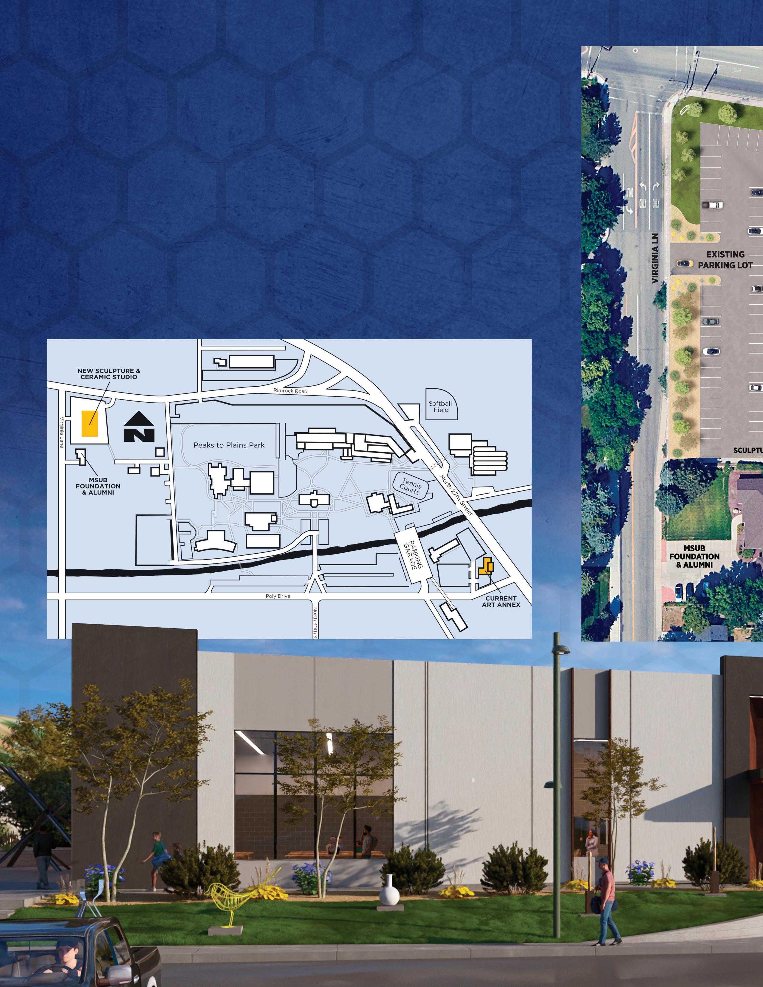 THE NEW SCULPTURE & CERAMIC STUDIO at Montana State University Billings will be inclusive modern spaces where students and community connect through shared practices in the arts. The studios will include state-of-the-art facilities and equipment that provides safe and effective learning environment. There will also be dedicated outdoor workspaces and a sculpture garden featuring ceramic and sculpture art. Beyond the classroom, this vibrant new building will become a cultural asset for Billings—inviting the community to engage with the arts, attend exhibitions, and celebrate the achievements of MSUB’s creative community. It’s a place where talent is nurtured, ideas come to life, and the arts thrive.