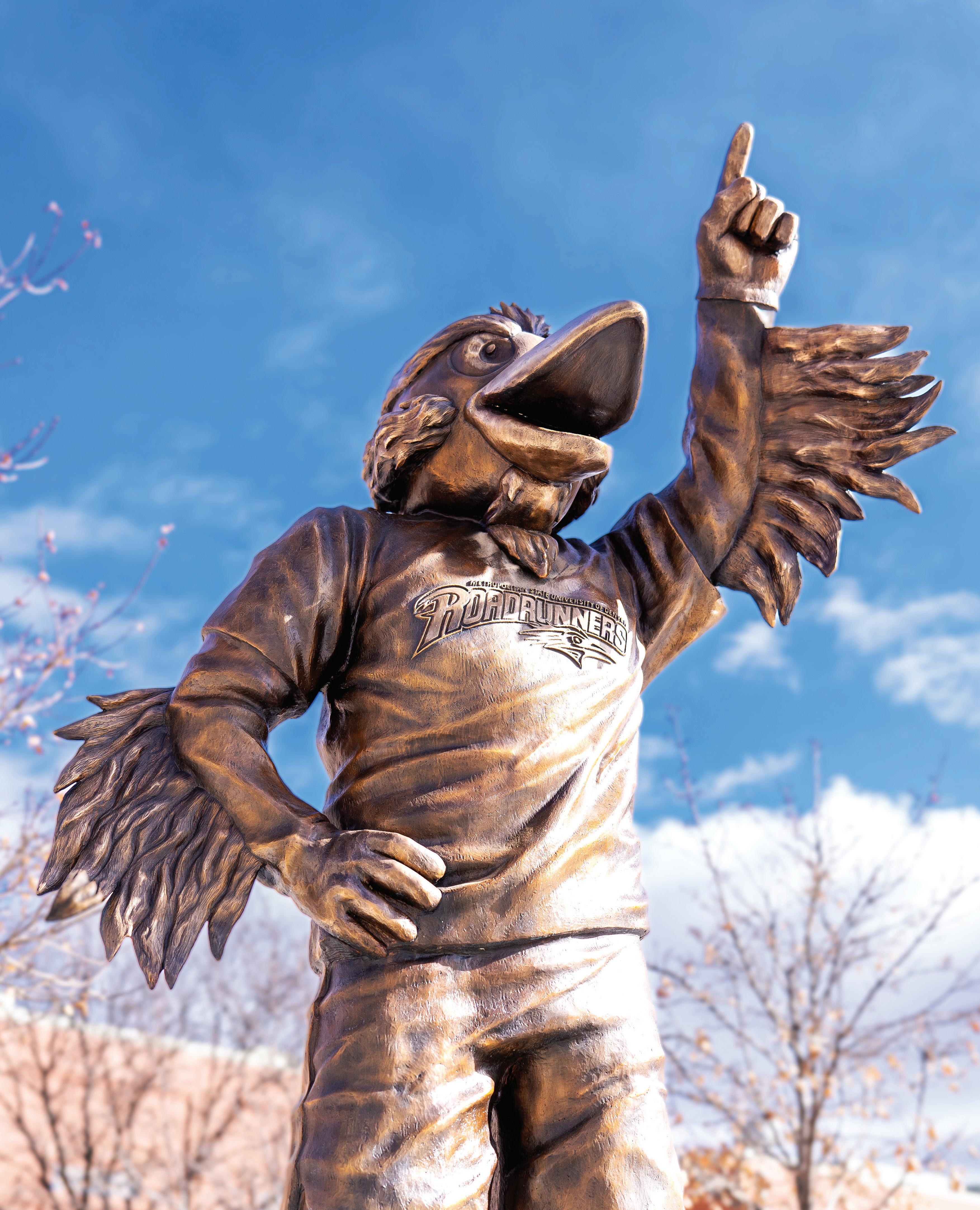 Metropolitan State University of Denver’s campus got even rowdier in January with the installation of a new statue celebrating the University’s beloved mascot. Funded by gifts from supporters, the Rowdy the Roadrunner Mascot Statue perches in front of the Jordan Student Success Building. At the unveiling event, hosted by the Alumni Association Board of Directors, University leaders feted the new addition to the JSSB lawn. But no one was as excited as real-life Rowdy, also in attendance, whose likeness is now preserved for future generations of Roadrunners.
