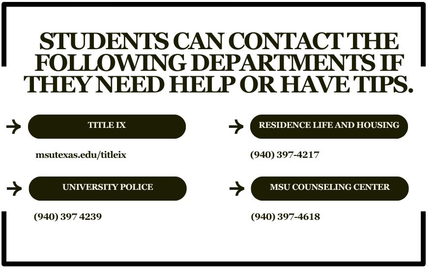 The MSU police, Title IX, Residence Life and Housing and the Counseling Center all have policies regarding safety and security of every student enrolled at MSU, which these departments work together to reinforce and implement.