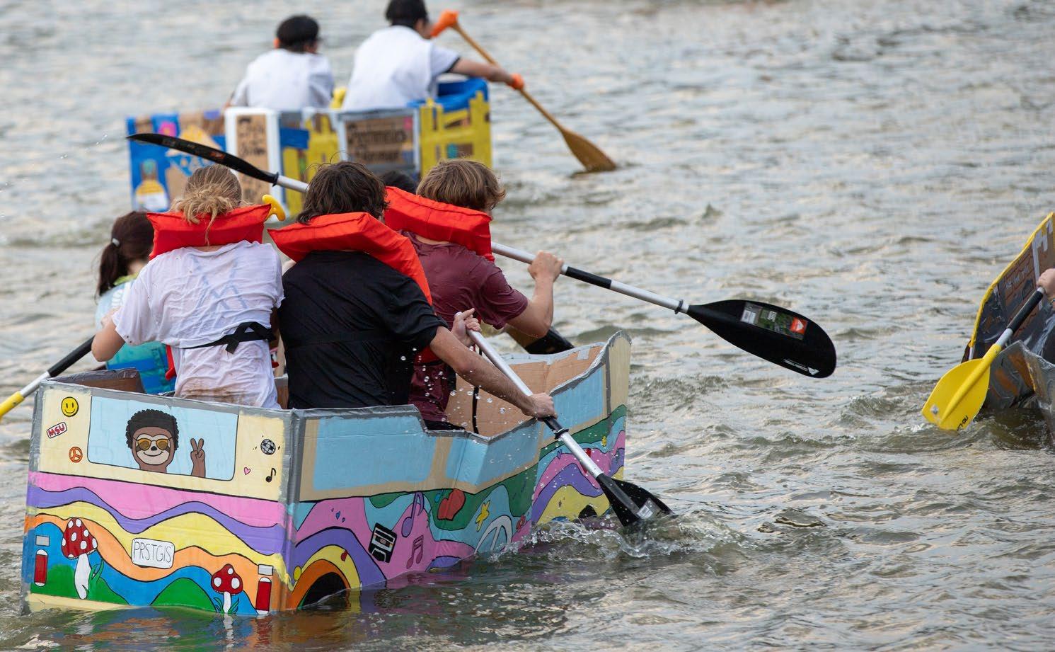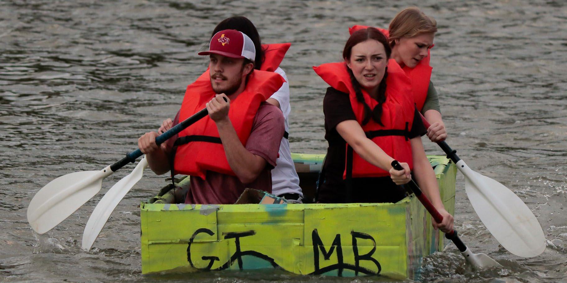 La carrera de botes de cartón se llevó a cabo el jueves 23 de octubre en el Sikes Lake. Varias organizaciones estudiantiles compitieron para ganar este evento tradicional de Homecoming.