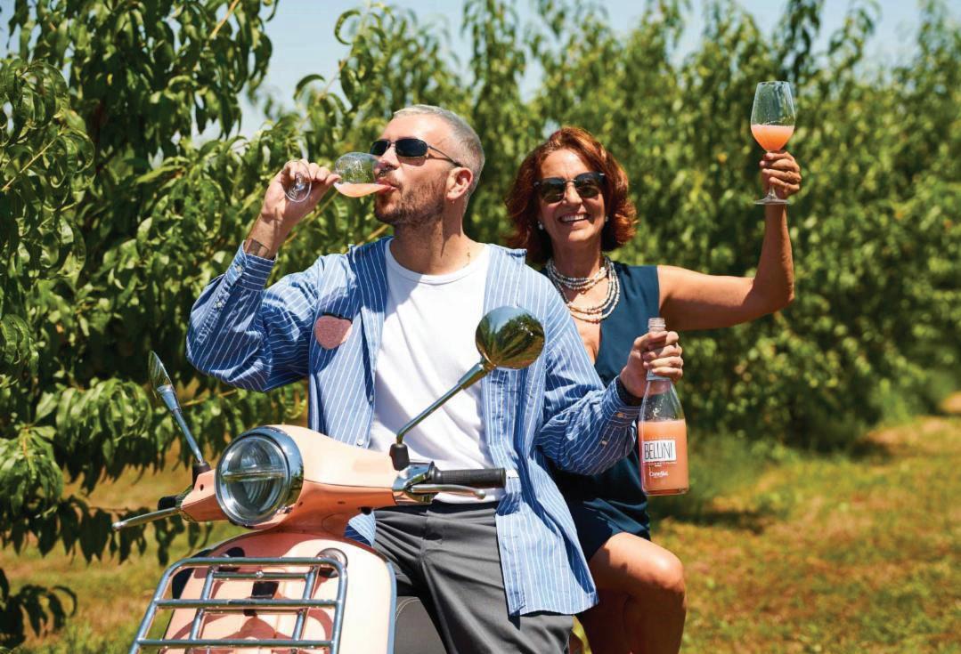 80% sparkling white wine and 20% real white peach puree with a few drops of raspberry juice. Elegant aromas of white peach and hints of white flowers, giving Bellini a fresh and fruity character. The ripe white peach sweetness is balanced by the effervescent freshness of the sparkling wine. 451047