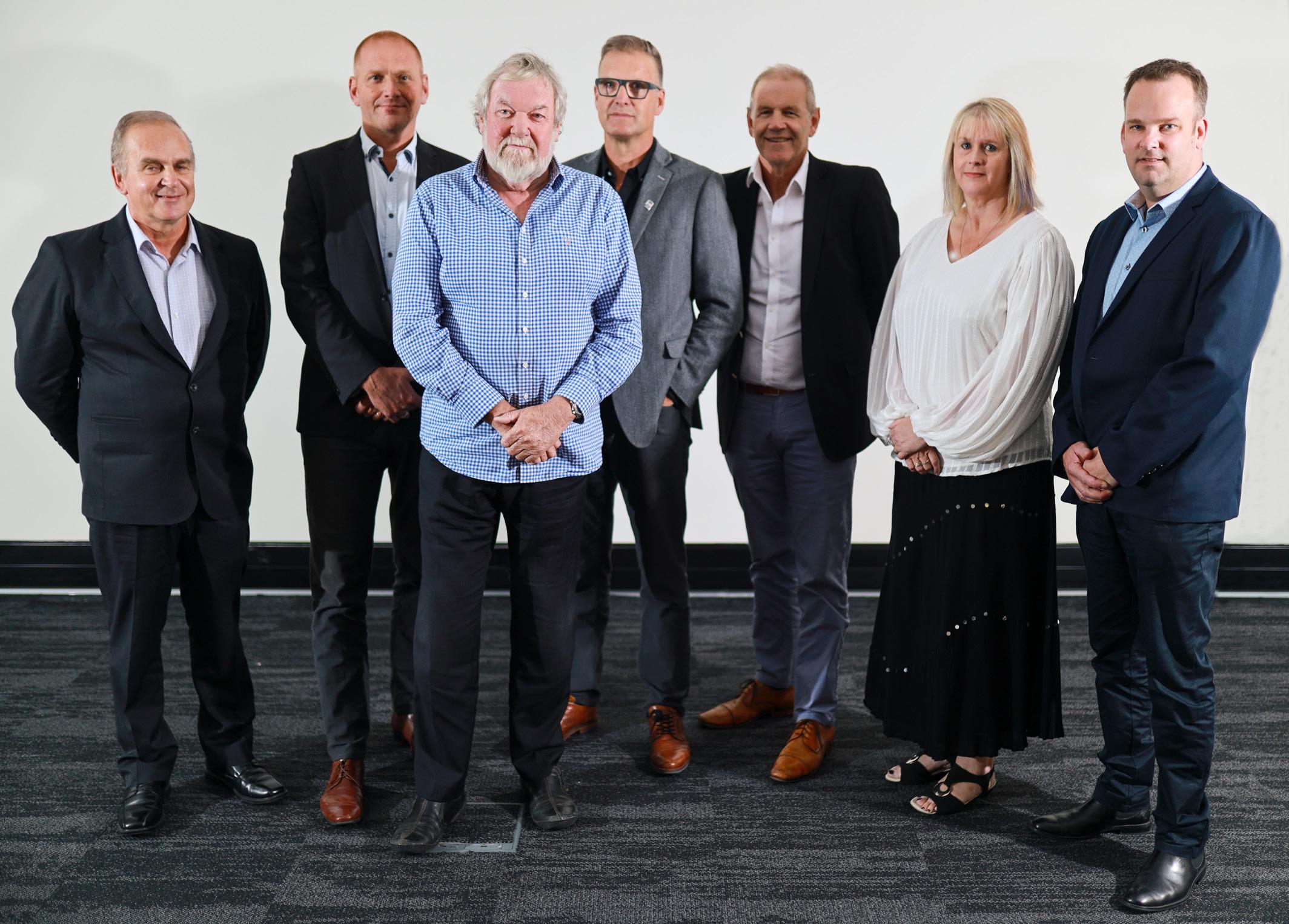 L-R: Tony Allen, Grant Woolford, Bob Boniface (President), Sturrock Saunders, Ross Verry, Andrea Andrew, Joris Sanders.