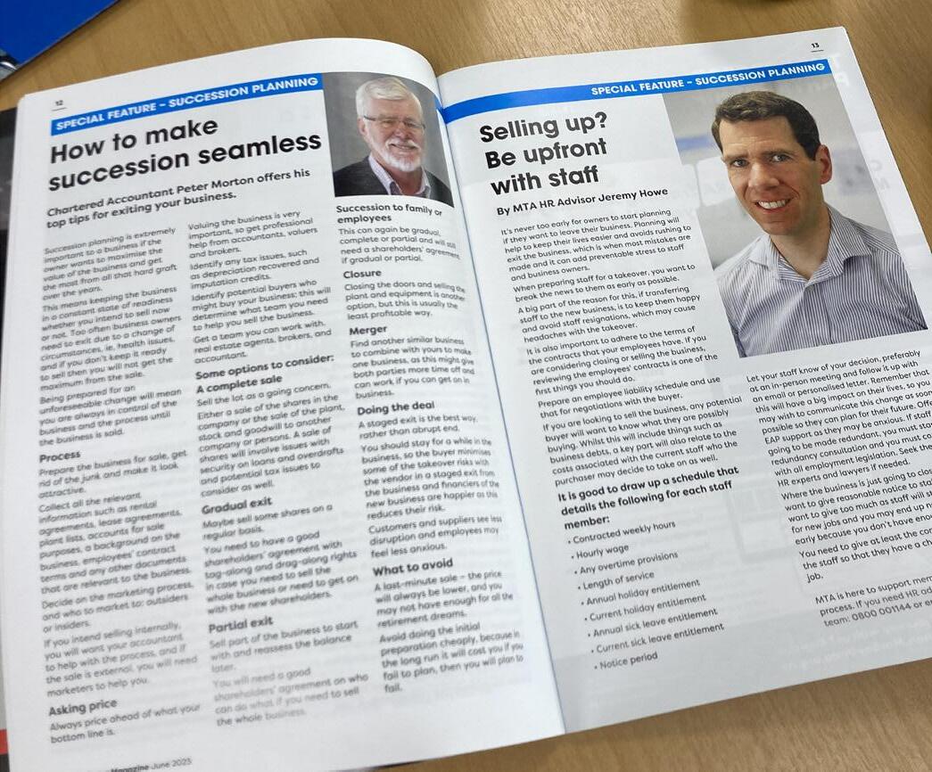 On another matter, we regularly hear from our Member Support team that many of you are interested in the subject of business succession.