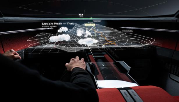 sorts, allowing for all manner of oversize items – e-bikes, for example – to be carried. The Activesphere’s front doors are hinged at the A pillar, and its rear passenger doors at the C pillar. There is no B-pillar, so the entire interior space opens up for passengers to gain easy access to the minimalist, futuristic, four-seat interior. That interior offers up some fancy tech. Particularly fascinating is the mixed reality concept, where occupants can use mixed