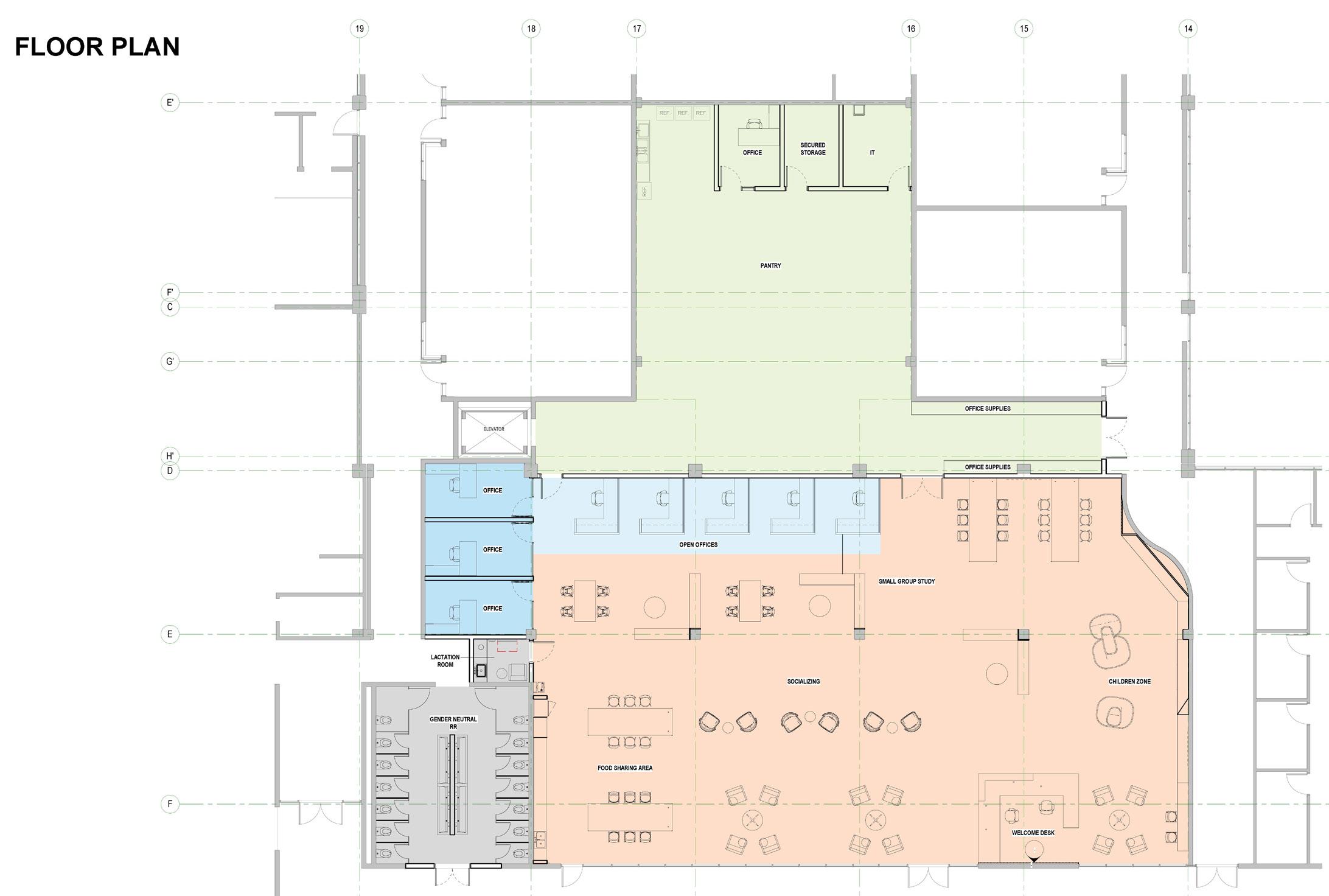 The location of the equity center has been carefully chosen to ensure it is easily accessible to students. It is centrally-located directly under the student hub, making it easy for students to fnd and access the resources they need. The new space is also designed to reduce barriers and stigma for students seeking assistance for food and housing. “The equity center expands on the existing student spaces, welcoming children and families,