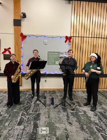MHCC s Saxophone Quartet performed at the Wood Village tree lighting event! Thank you to MHCC Band Director Danielle Davey for giving your students this chance to provide live holiday music for our community during this festive event.