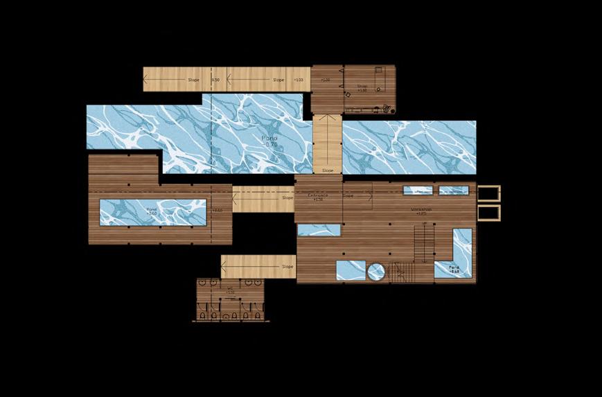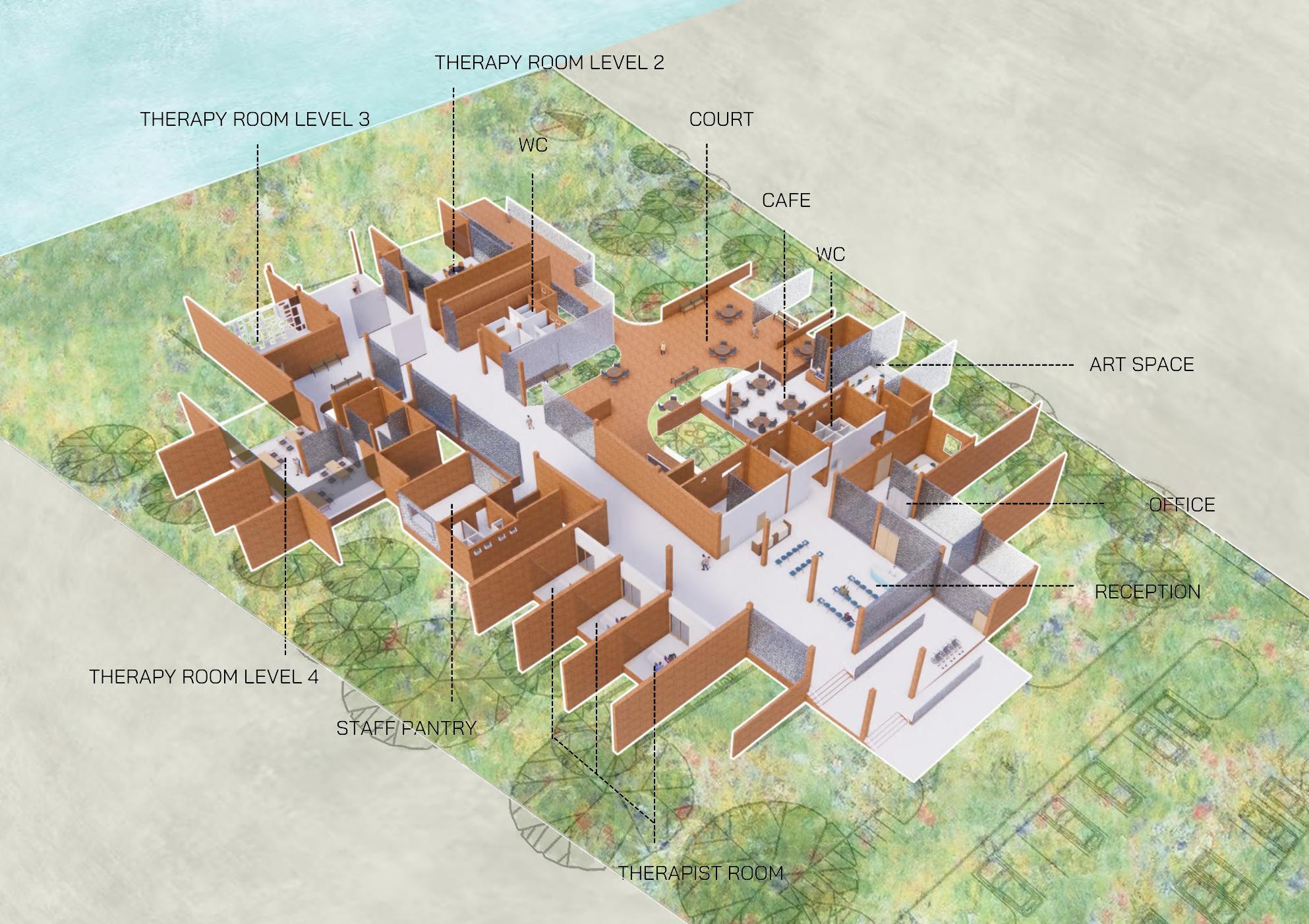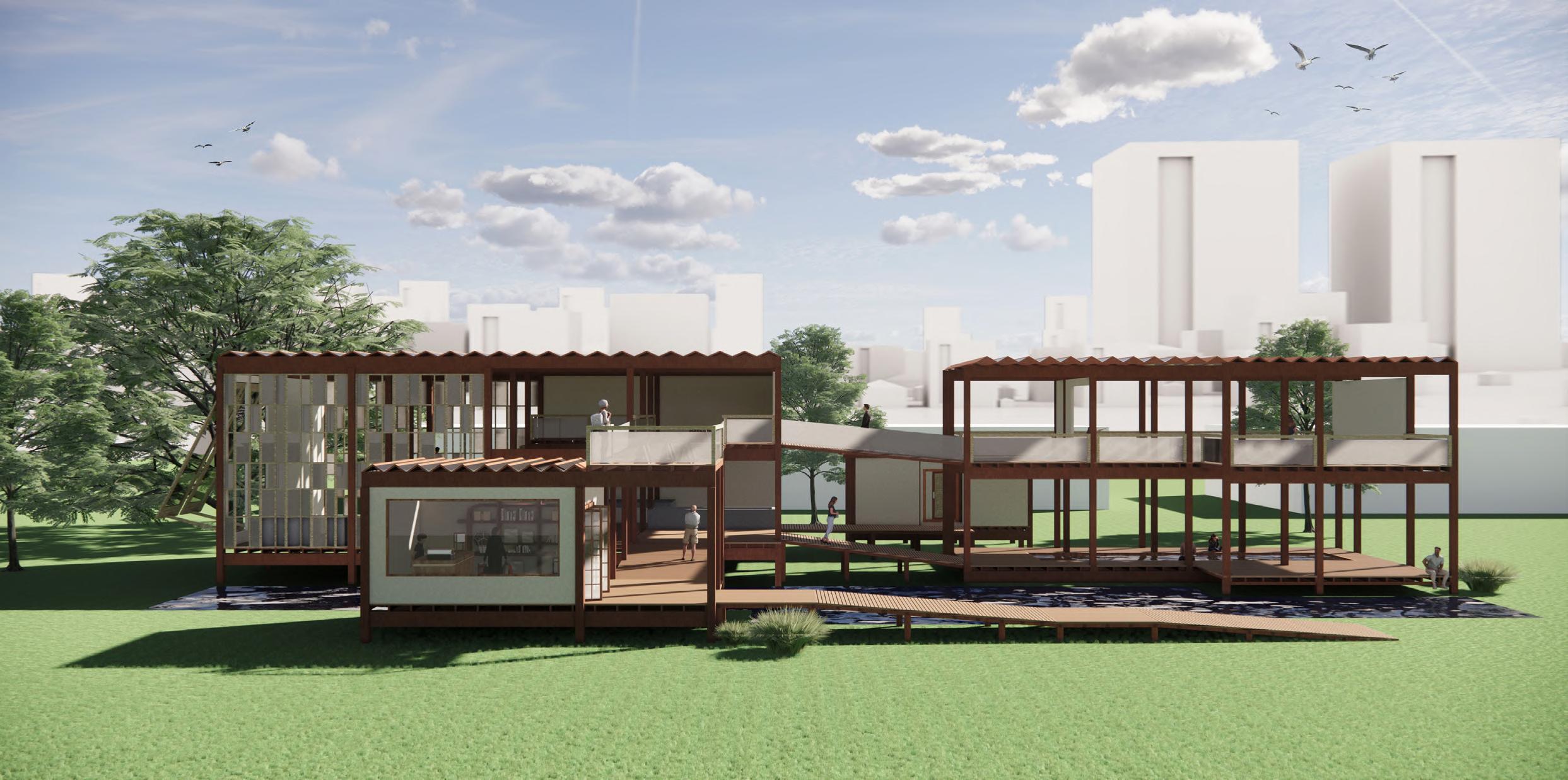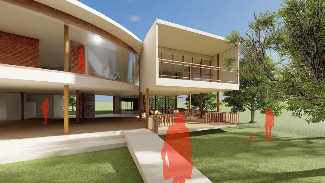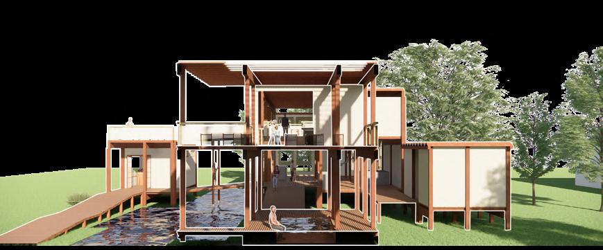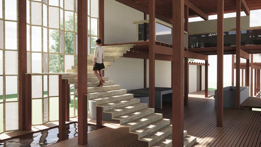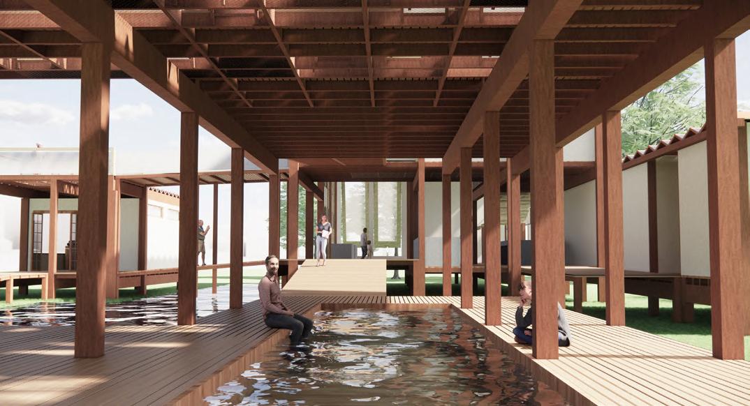 Architecture that conveys the meaning of nature It is like conveying nature through mulberry paper that has water as a link to flow and merge together in the form of a connection of space to space until merging into a homogenous mass of mulberry paper in the form of architecture.