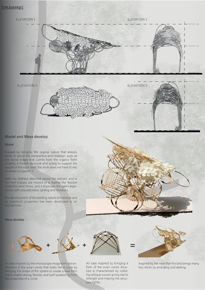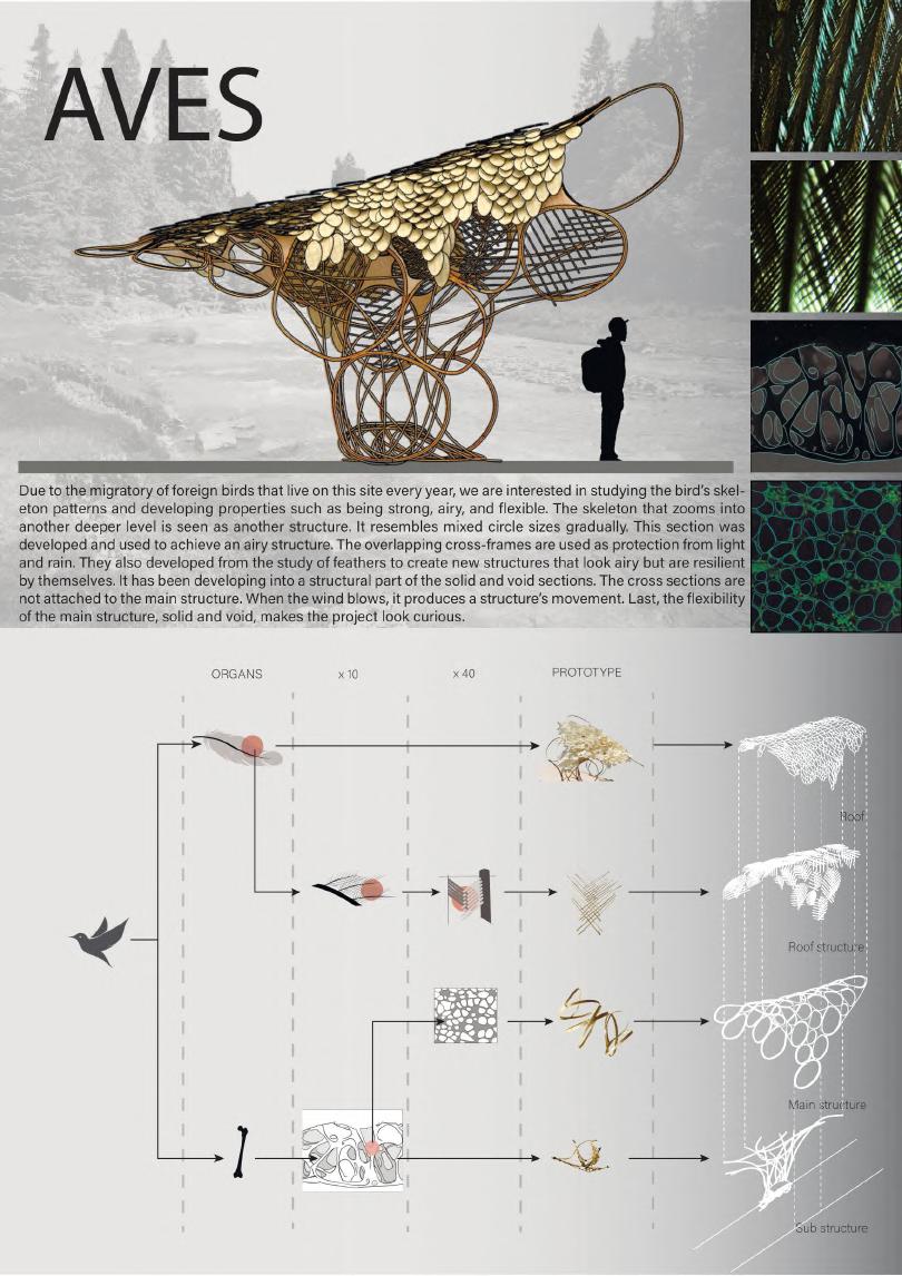 • Birds are poultry with interesting body structures that are both airy and flexible, thus taking advantage of birds to design a pavilion.
