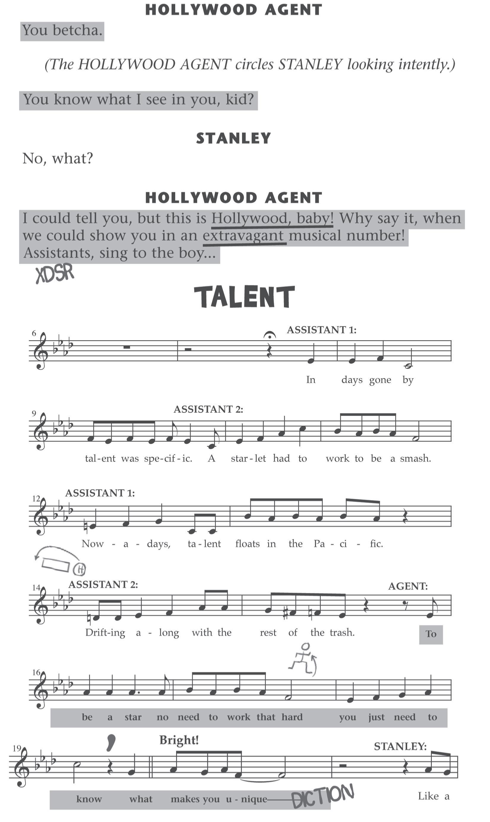 This book is your script ss Whether putting on a school production or rehearsing a professional show, every actor, director and stage manager works from a script. Your script contains some additional information like this introduction and a glossary. You can look up any bold words in the glossary at the back of this book. Be sure to take good care of your script, and use a pencil when taking notes in it, since what you’ll be doing onstage can change during rehearsals.