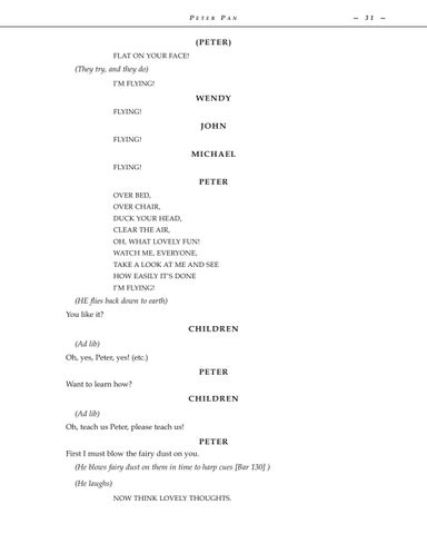 (He blows fairy dust on them in time to harp cues [Bar 130] ) (He laughs)
