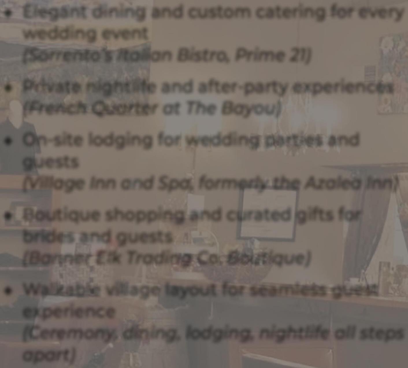 Awedding in theHighCountry is morethanaceremony, it is asharedexperienceshaped by place.Convenientlylocated between Boone,Banner Elk, and Blowing Rock,Foscoe Rentals surrounds your guestswith thesame beauty,pace,and sense of celebration thatdefine your day. With morethan 150 rustic logcabins, stylishcondos, and spacious townhomes,manyoffering mountain views, hot tubs, trail access, and resort amenities, everyone staysclose,comfortable, and connected. It becomes ashared stay wherelaughter lingers, storiesunfold, and your guests remember your wedding as vividlyasyou do.