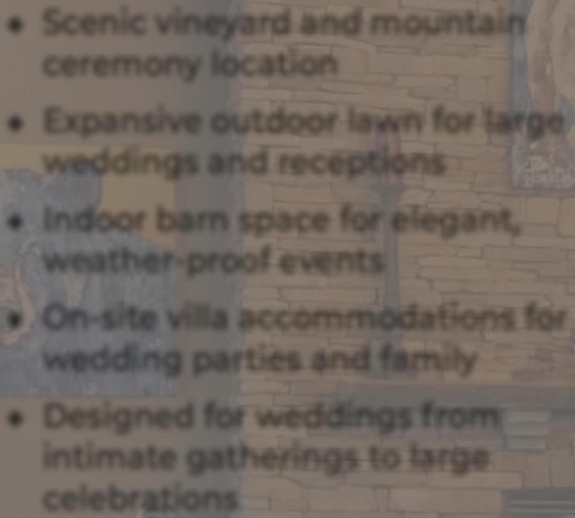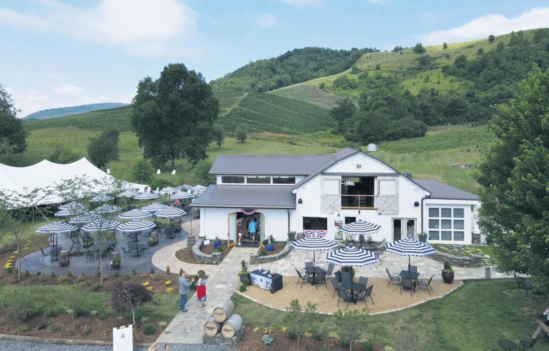 A restored historic barn on the property provides an additional event space. The upper level offers room for dining and live music, blending rustic charm with modern amenities.