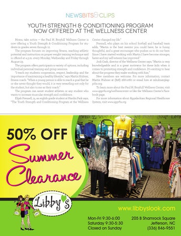 Center changed my life.” Presnell, who plays on his school football and baseball team adds, “Martin is the best mentor you could have; he is funny, thoughtful, and a great encourager who pushes us to do our best. Since I have started working with Martin I have become stronger, faster and my self-esteem has improved.” Jodi Cash, director of the Wellness Center says, “Martin is very knowledgeable and is a great motivator for these kids when it comes to promoting strength and confidence. It’s exciting to hear about the progress they make working with him.” New members are welcome. For more information, contact Martin Hubner at (828) 266-1060 or email him at mhubner@apprhs.org. To learn more about the Paul H. Broyhill Wellness Center, visit www.apprhs.org/wellnesscenter or like the Wellness Center’s Facebook page. For more information about Appalachian Regional Healthcare System, visit www.apprhs.org.