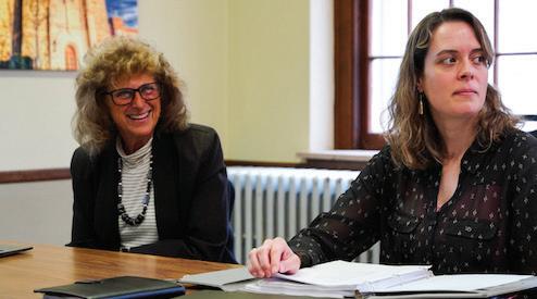 WALGRAVE (RIGHT) JOINED MMU FACULTY AND GUEST SPEAKER SOUTH DAKOTA STATE SENATOR JEAN HUNHOFF (LEFT) FOR A SPRING SEMINAR ON YANKTON’S CAMPUS.